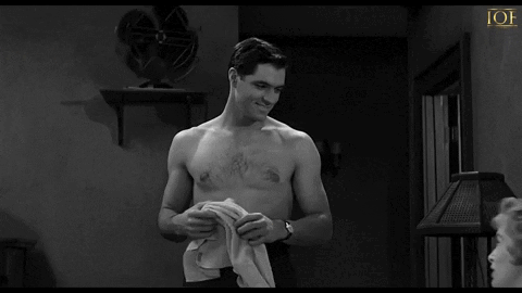 Sam’s toplessness – which, being male, is officially non-sexual – somewhat stands in for Marion’s, something still in 1960 Hollywood officially impossible. But in black and white practise, it is very much its own splendid, highly sexual thing.